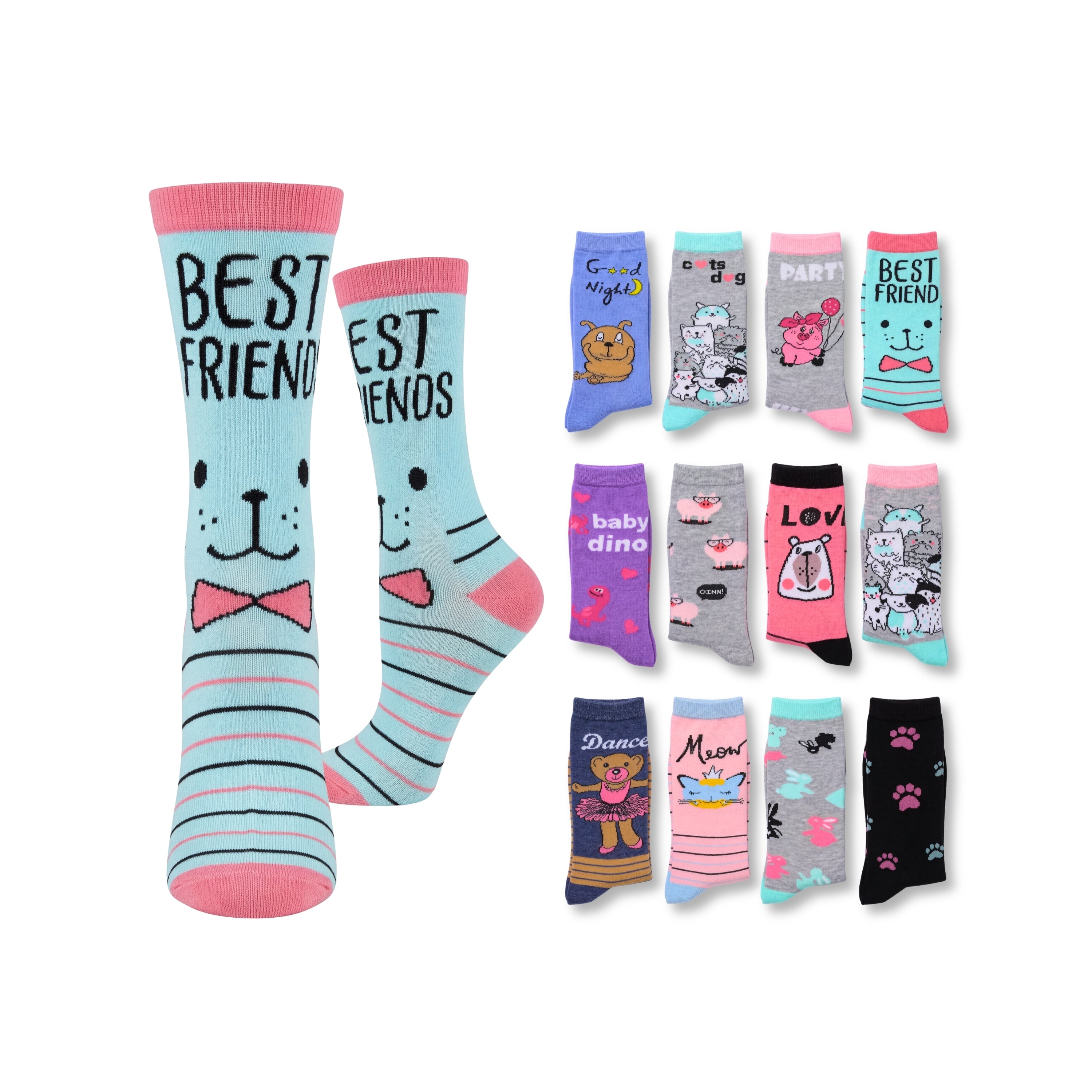 Heart, Rabbit, Cat and Unicorn Socks - 12 Pairs