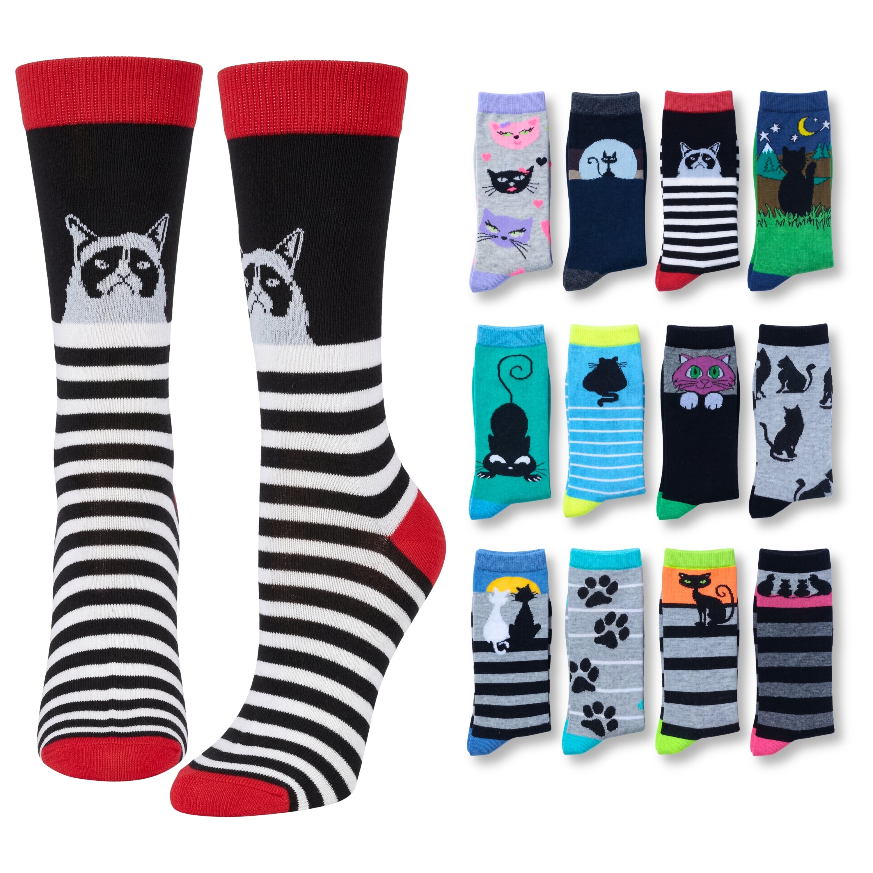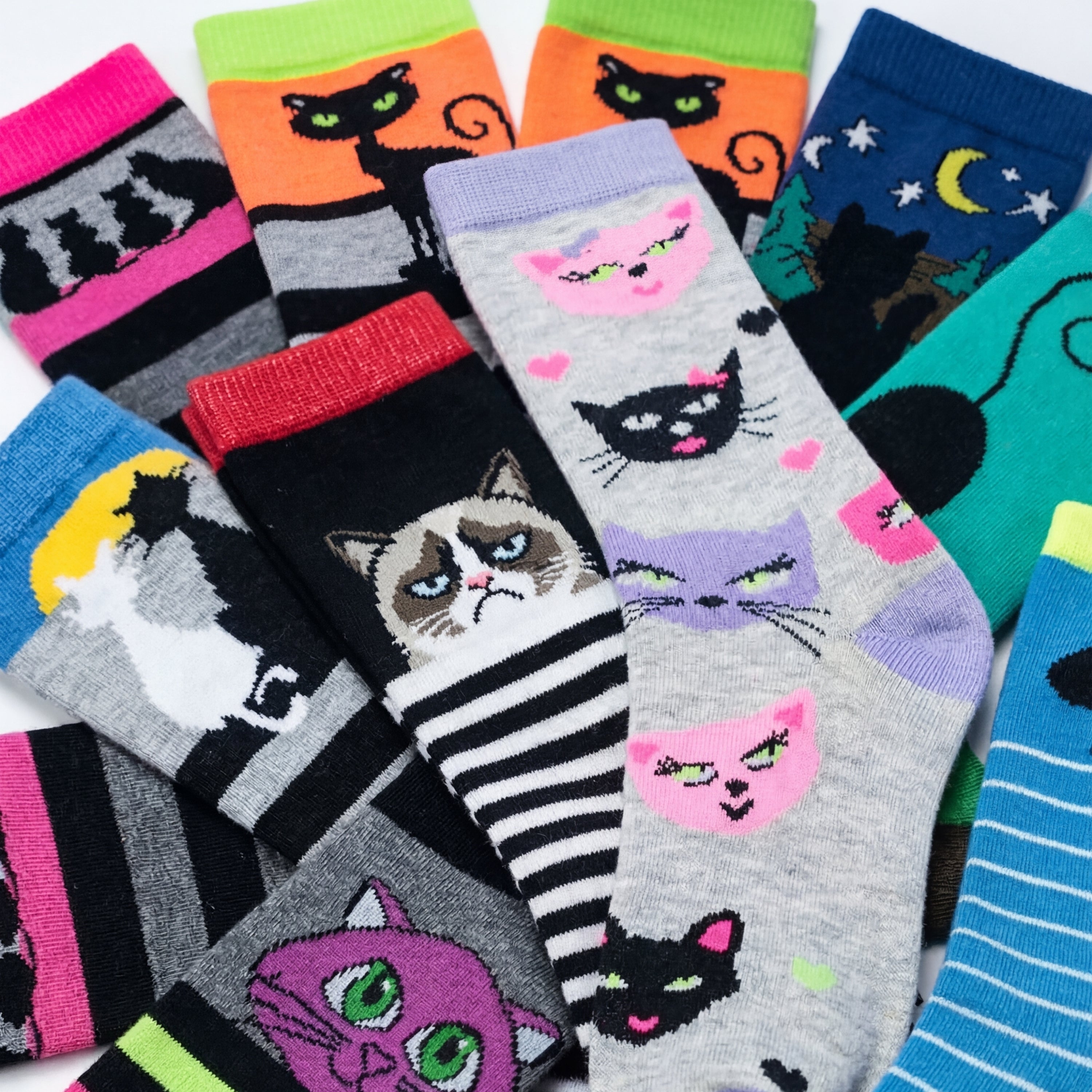 Cute Cat Socks - 12 Pairs