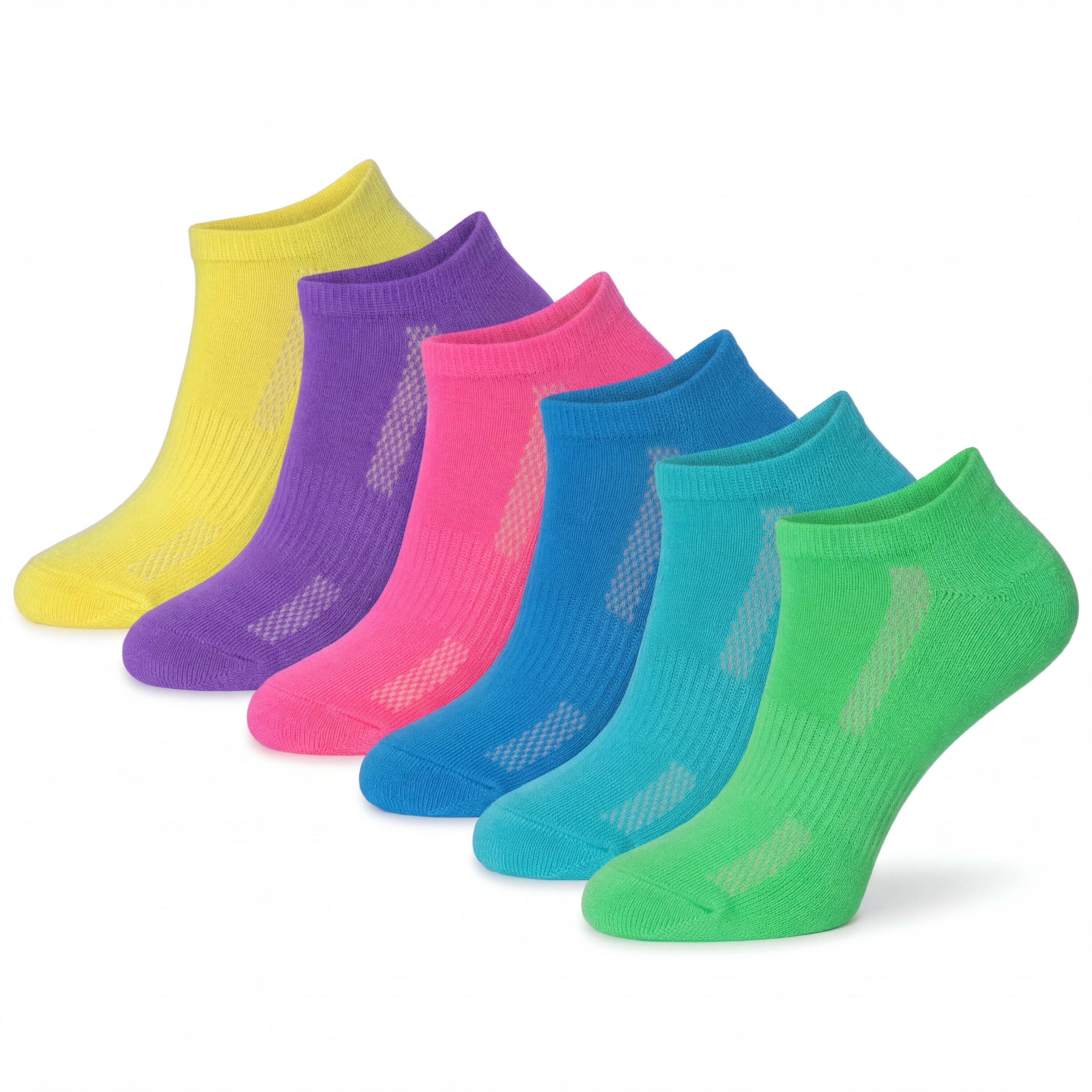 Vibrant Colors Black Toe No Show Athletic Socks - 6 Pack