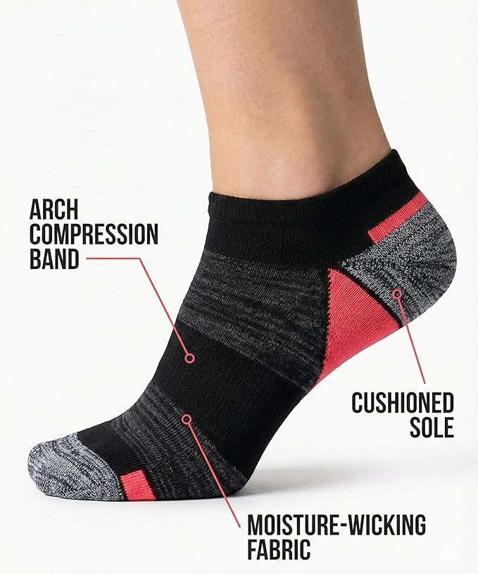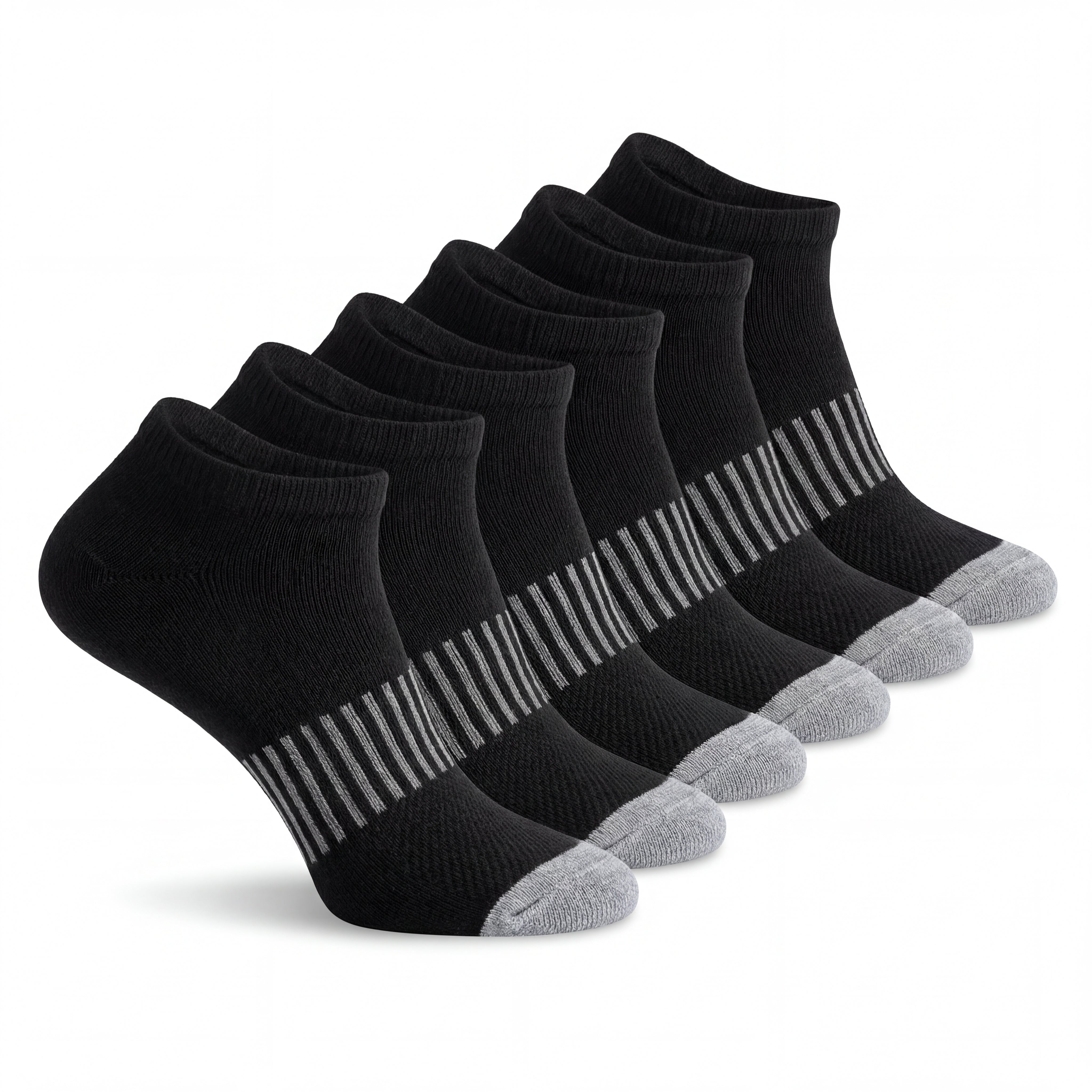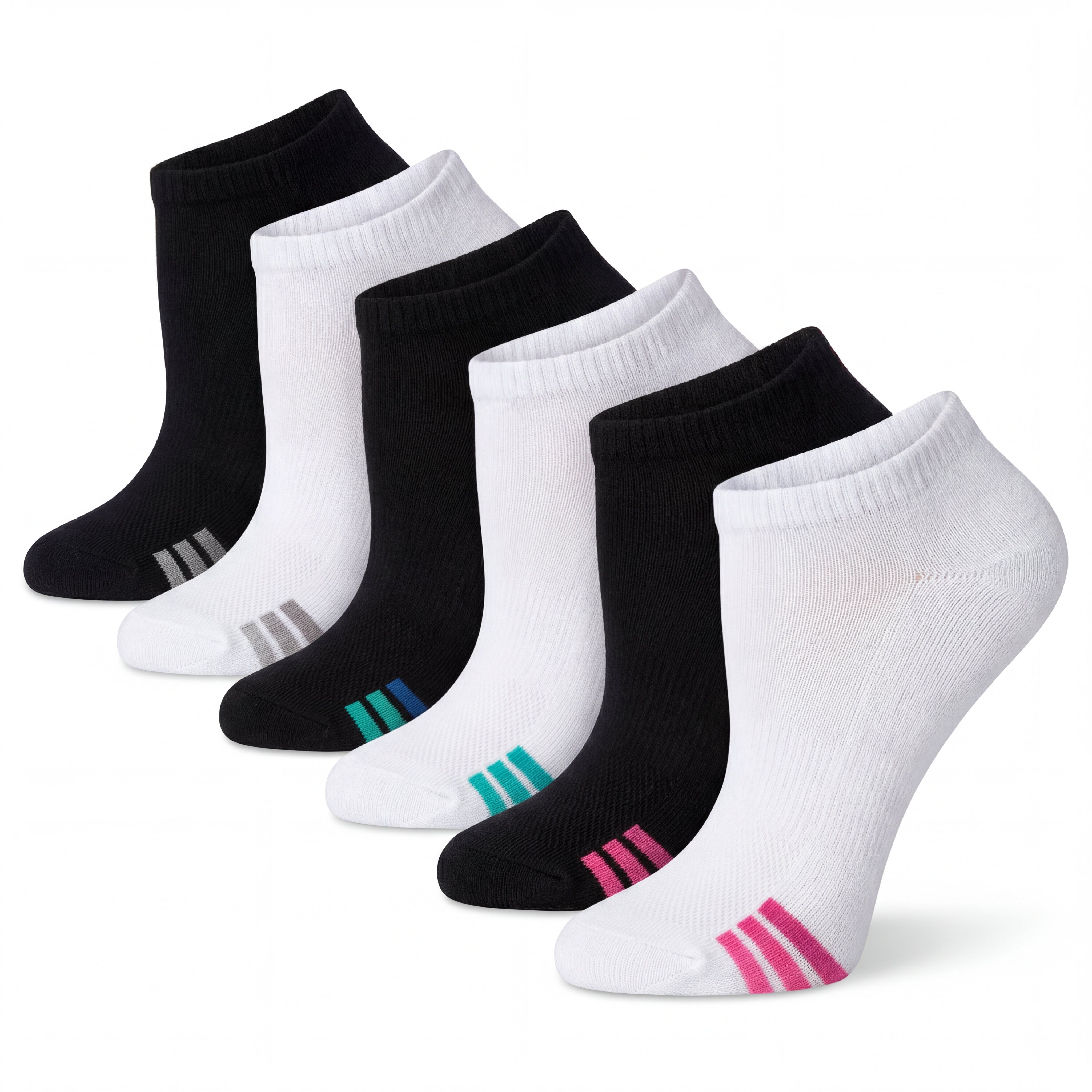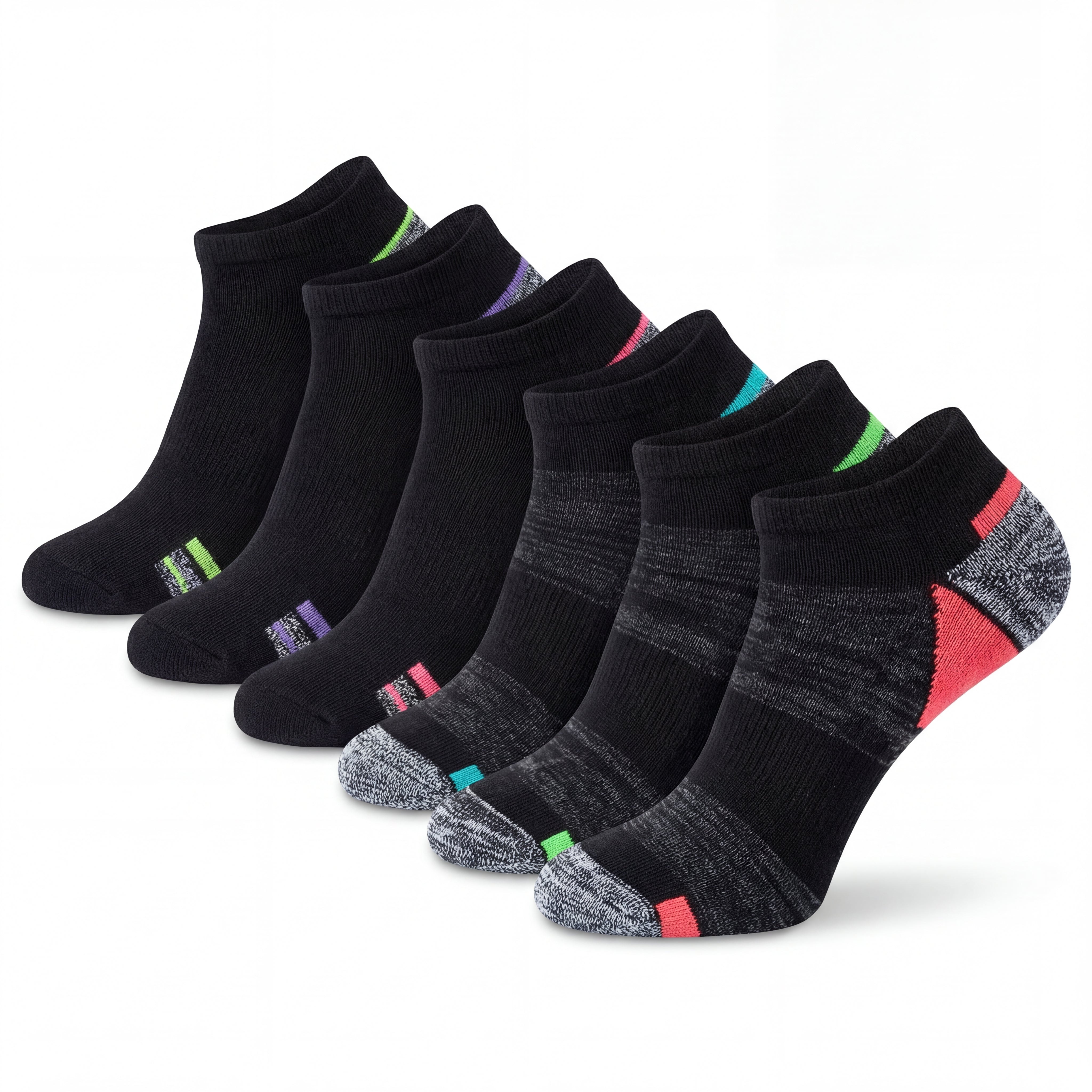 Multi-Colored Black No Show Athletic Socks - 6 Pack