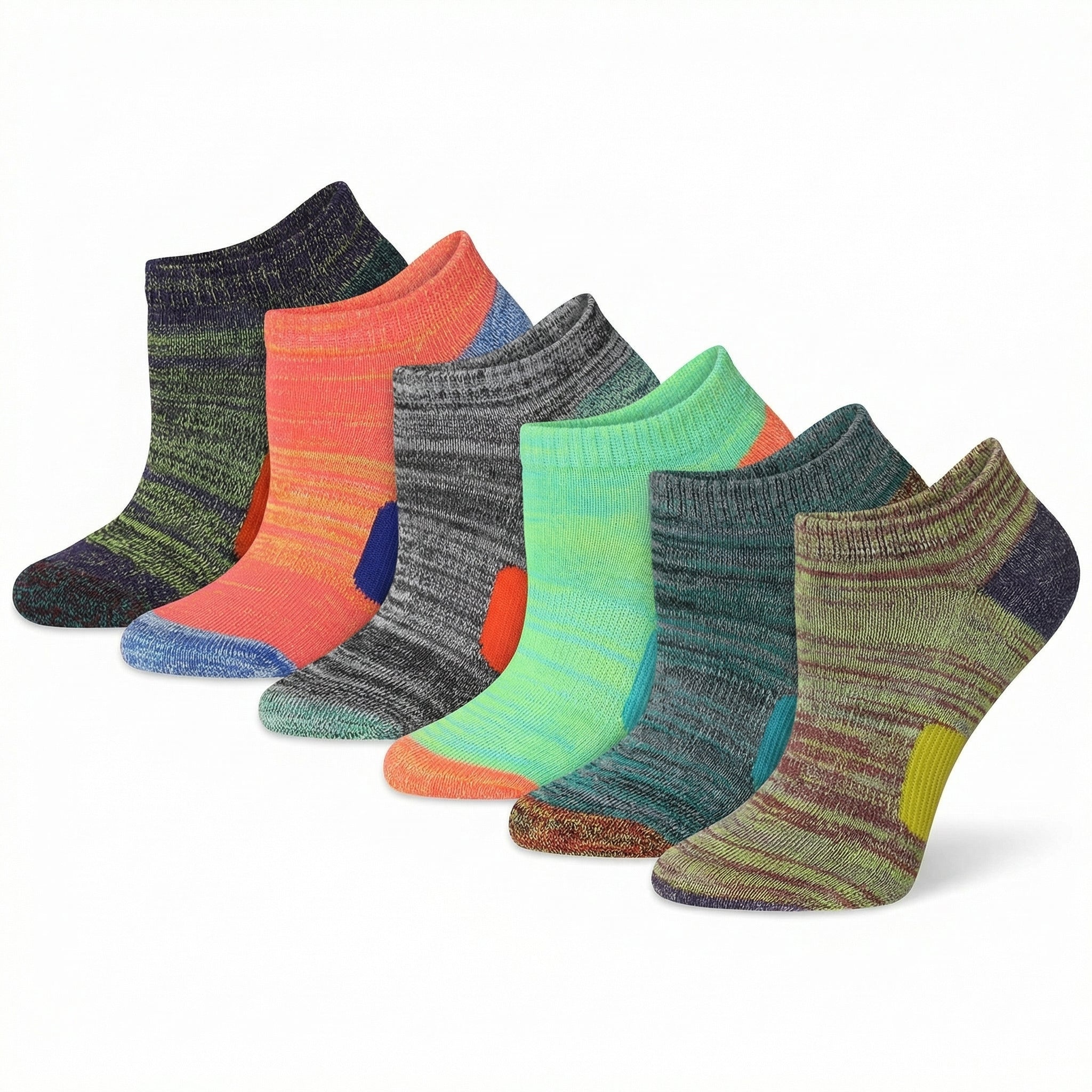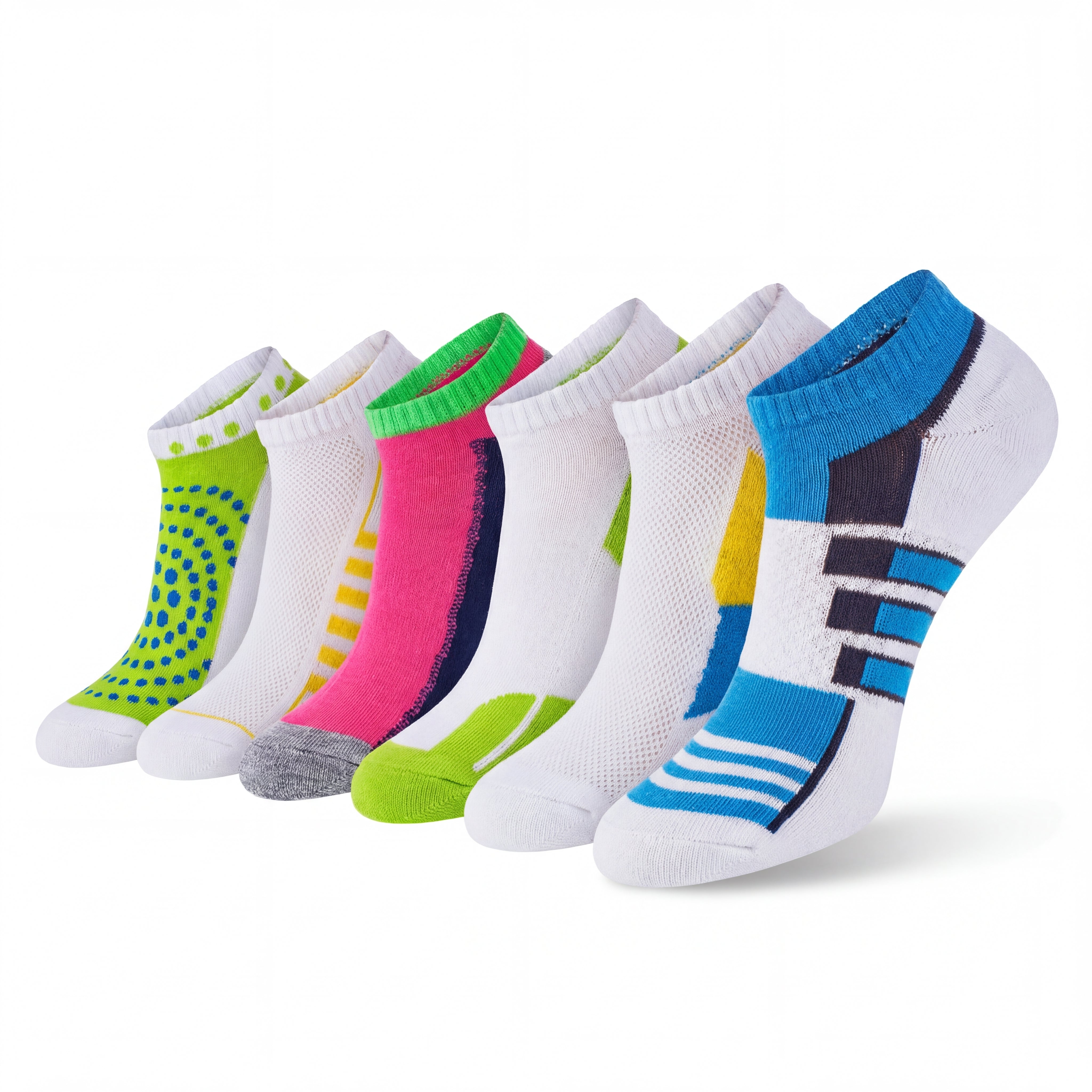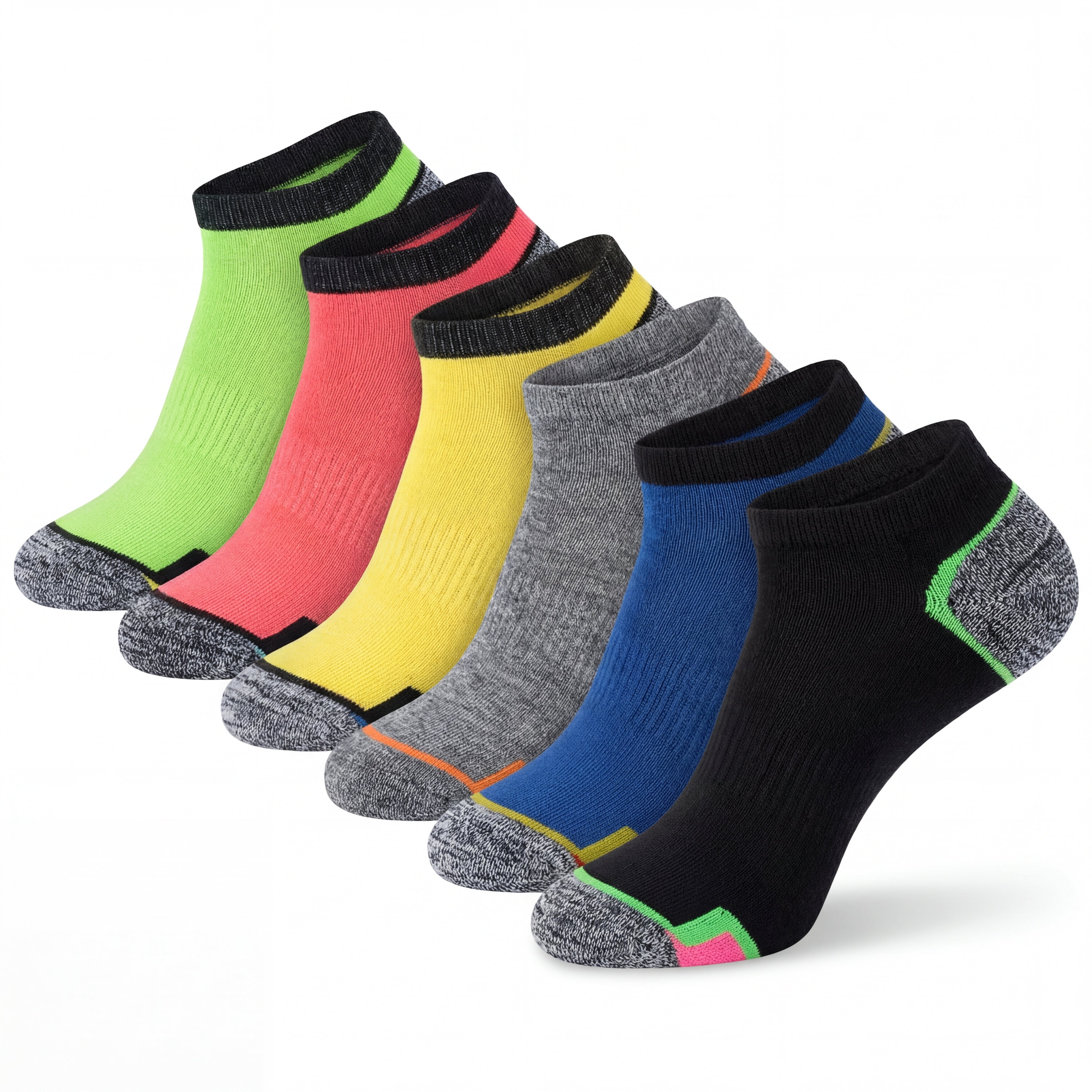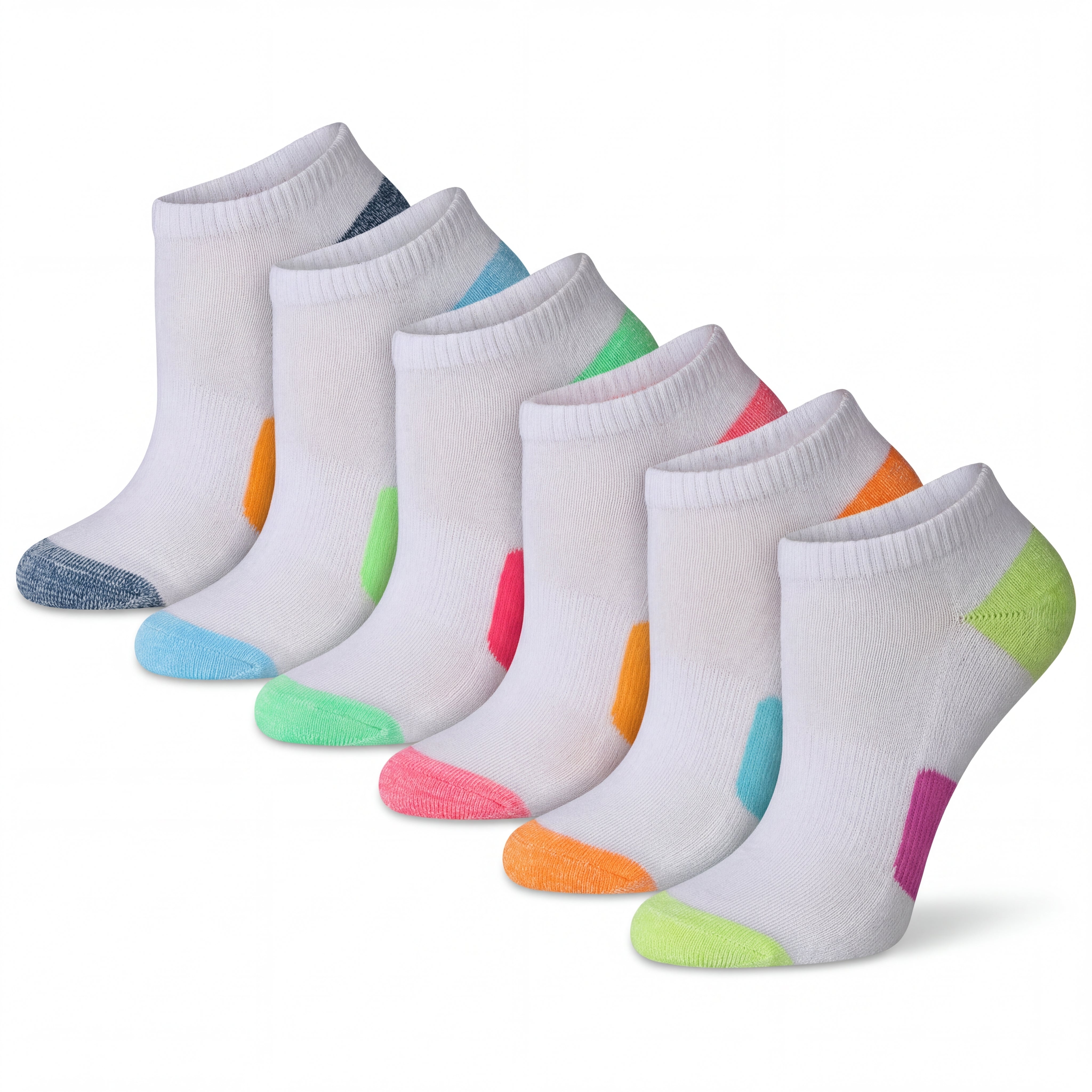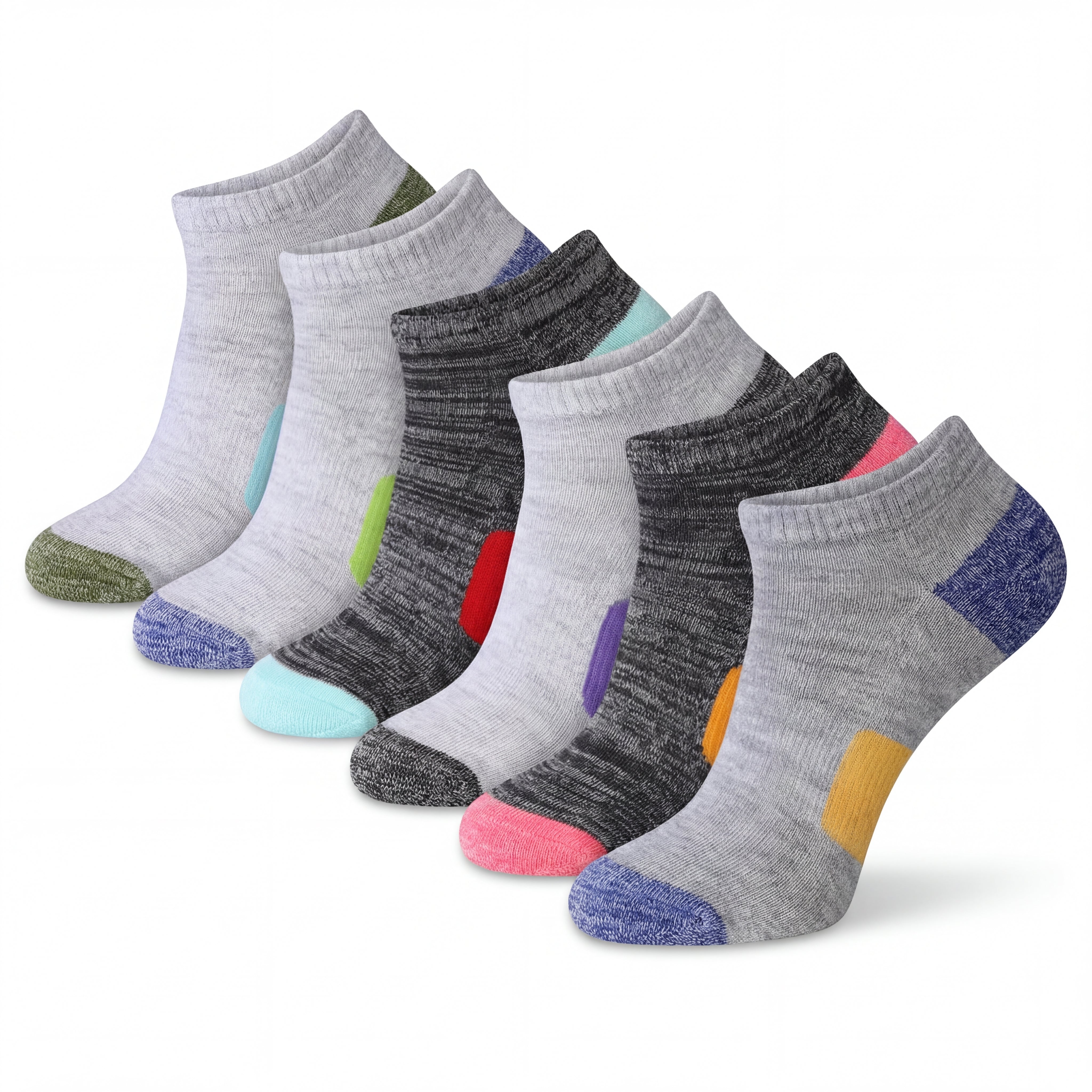 Women's Solid Vibrant & Grey Contrast Low Rise Socks - 6 Pack