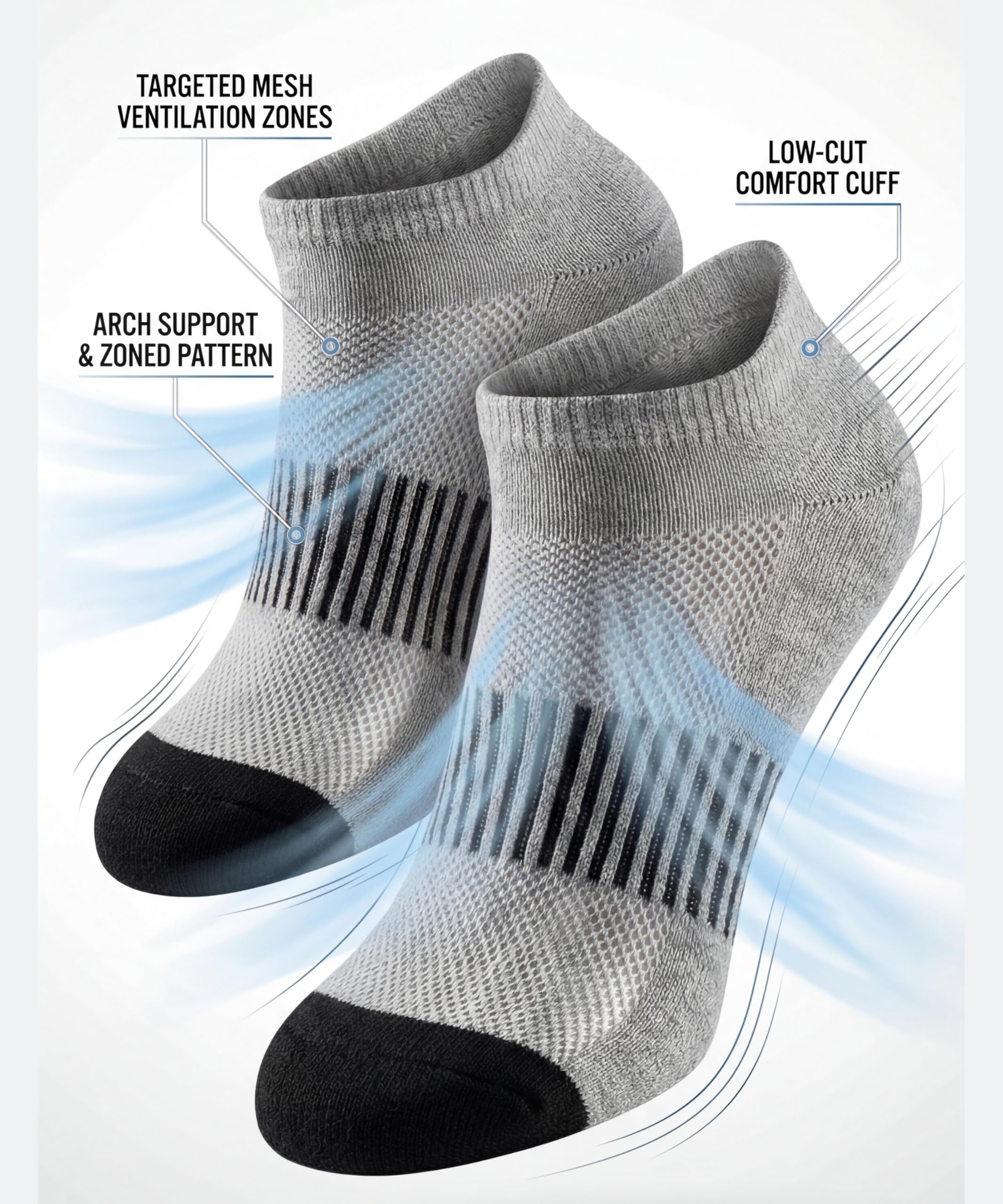 Women’s Heathered Mesh-Vent Low Cut Sports Socks – Cushioned Arch Support -12 Pairs