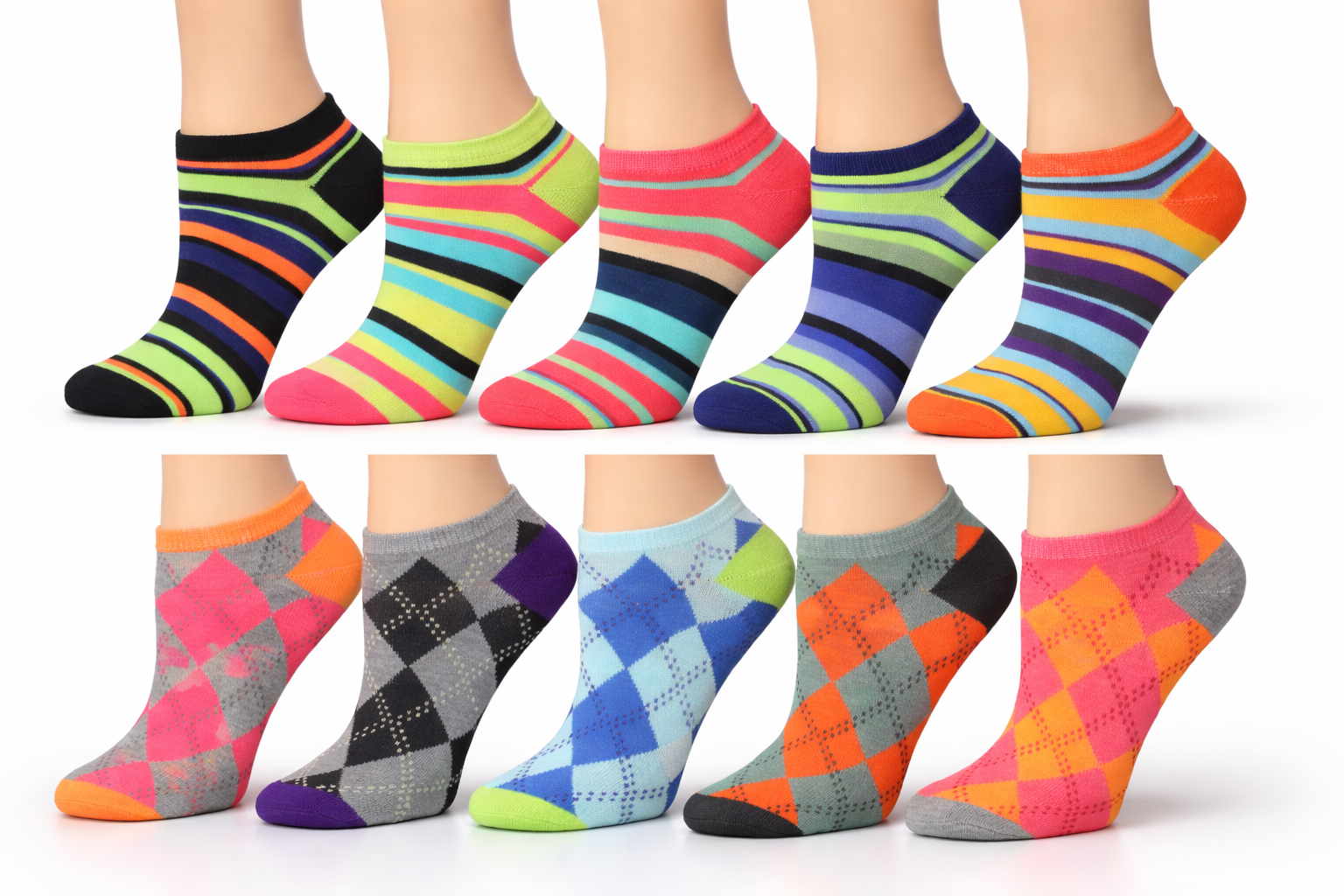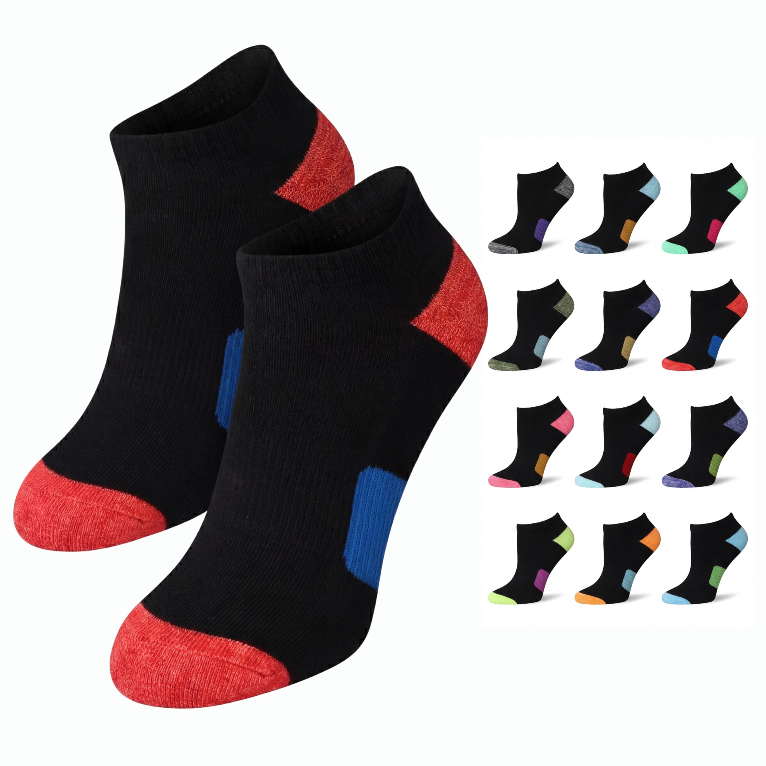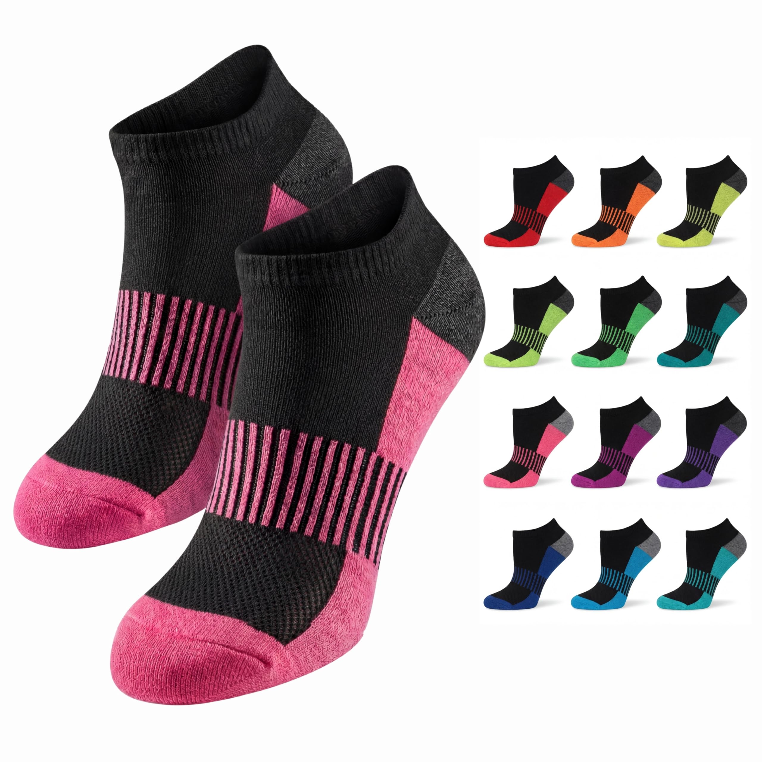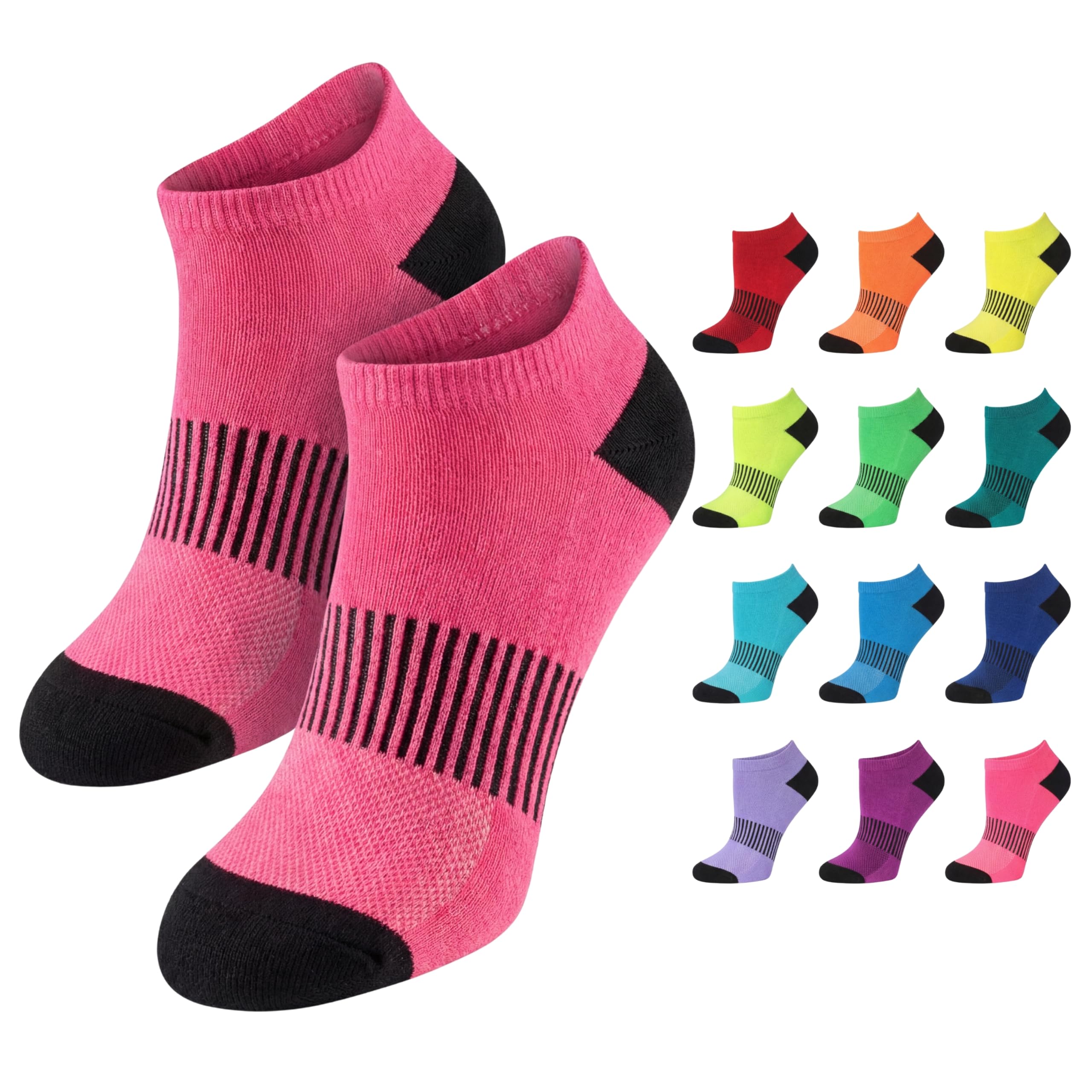 Women’s Neon Contrast Low Cut Sports Socks – Cushioned with Arch Support - 12 Pairs