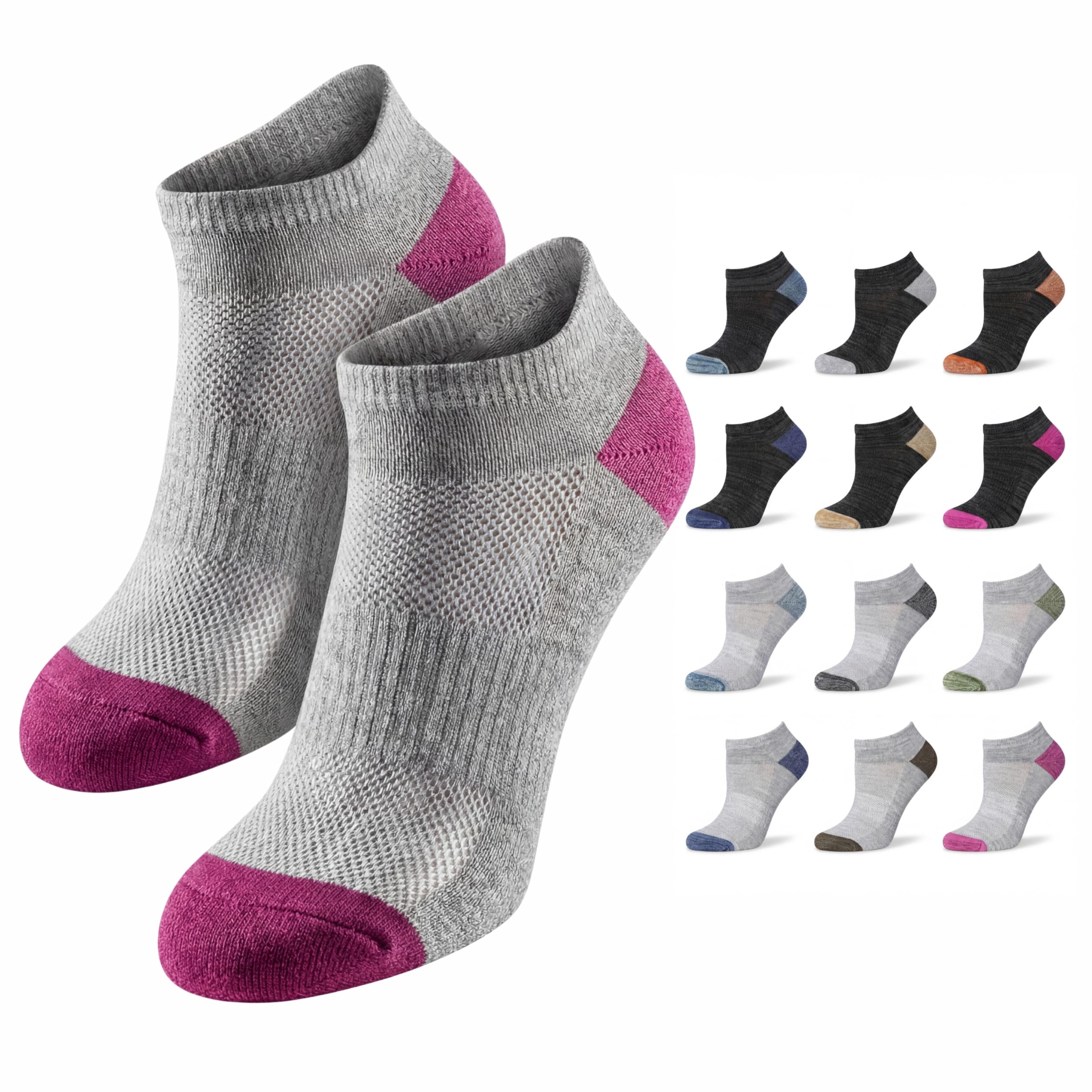 Women’s Heathered Mesh-Vent Low Cut Sports Socks – Cushioned Arch Support -12 Pairs
