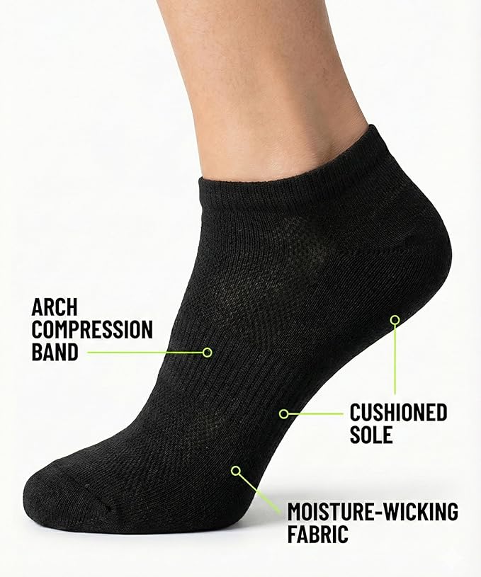 Cushioned Arch Support Low Cut Sports Socks - 12 Pairs