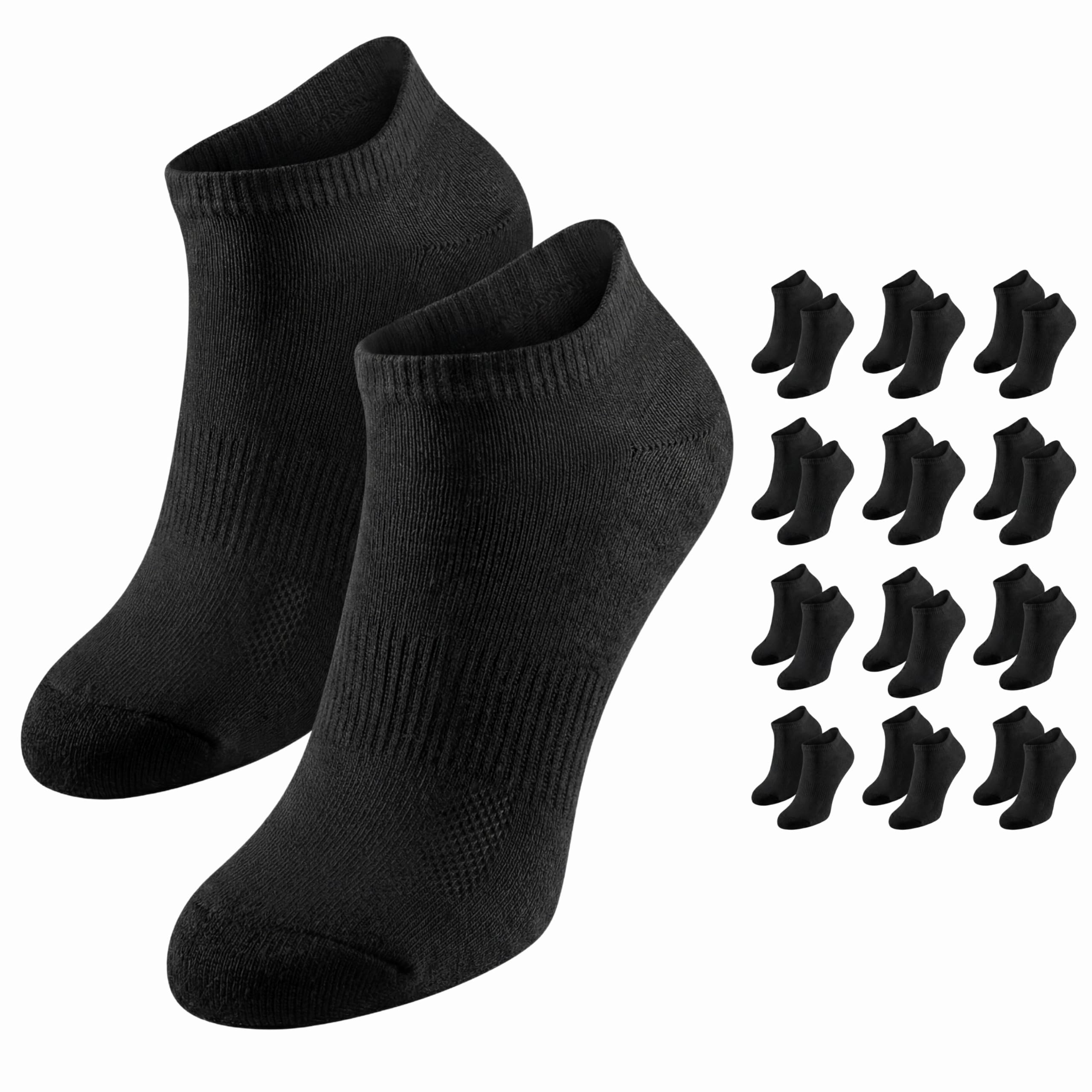 Women’s Black Contrast Low Cut Sports Socks – Ribbed Arch Support & Cushioned - 12 Pairs
