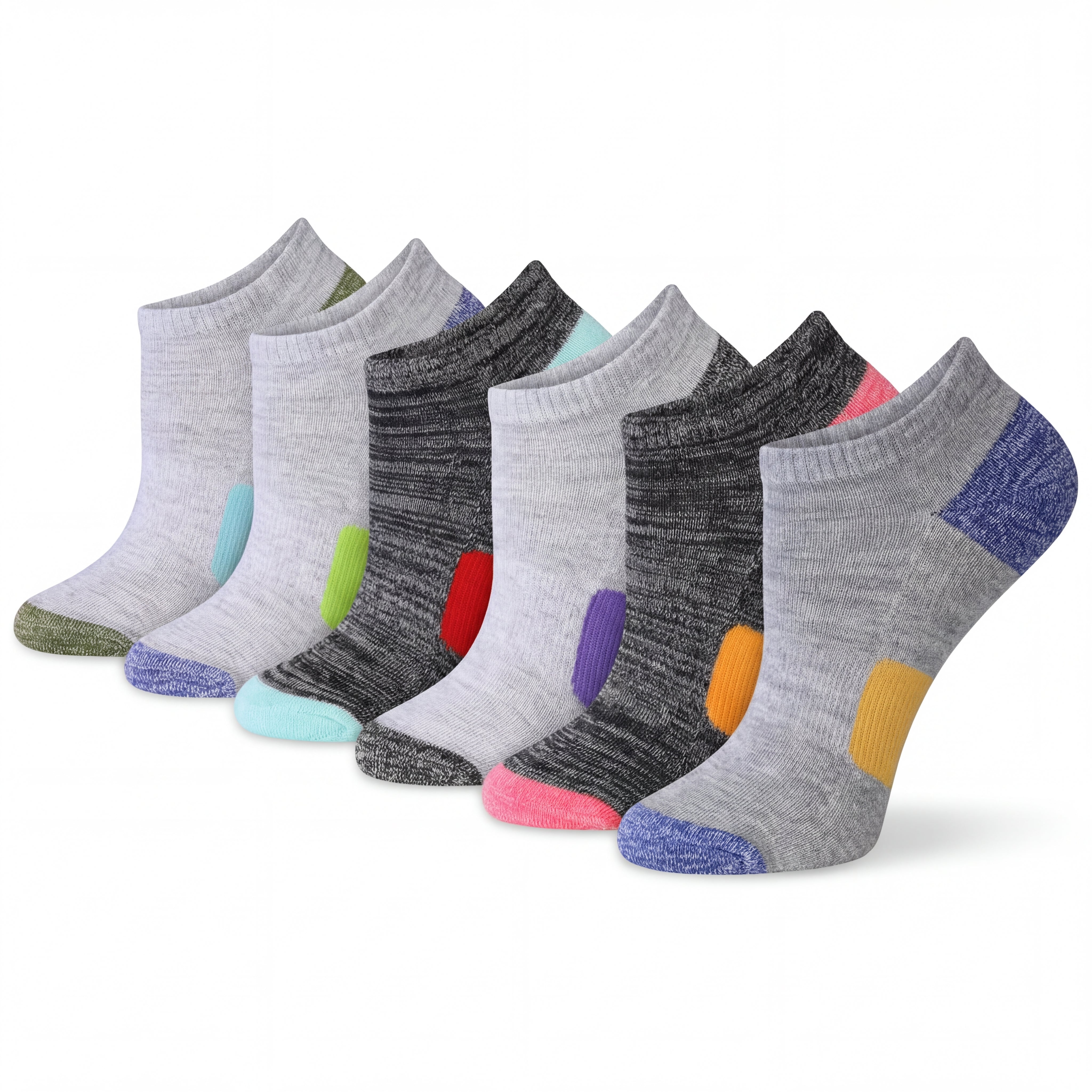 Multicolor Grayscale Blue Green Yellow Sports Quarter Socks - 6 Pairs