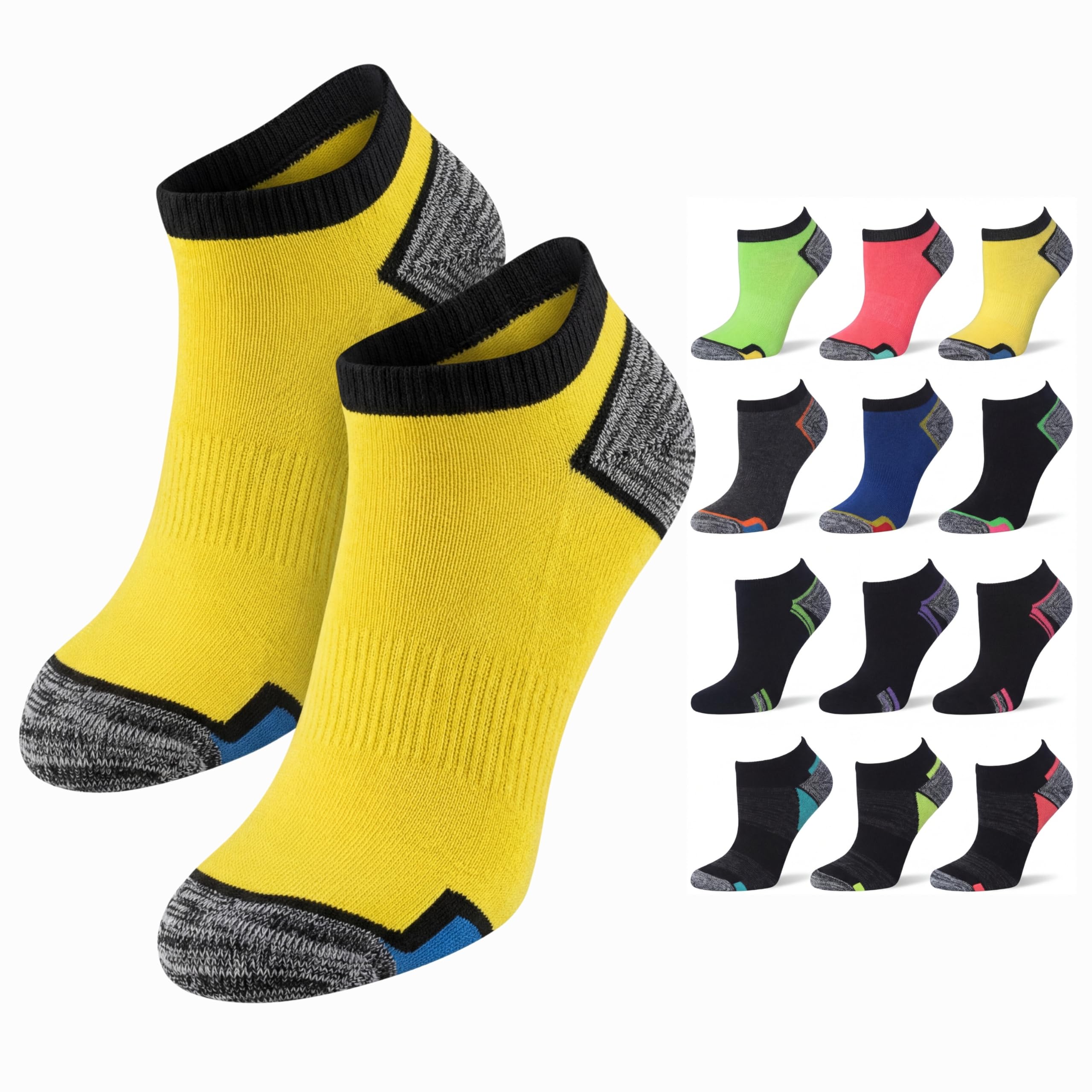 Women’s Neon Contrast Low Cut Sports Socks – Cushioned with Arch Support - 12 Pairs