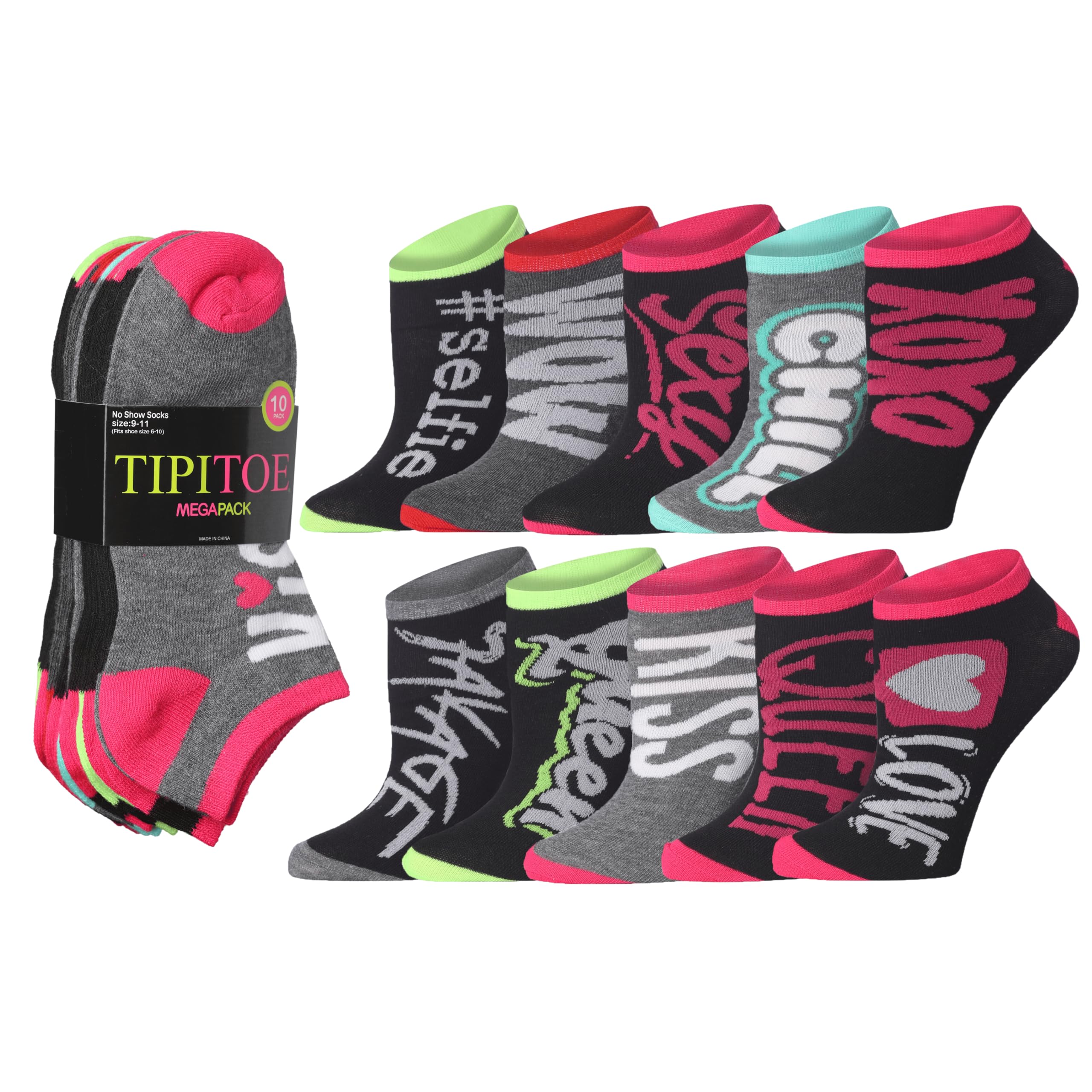 10 Pairs Love Notes Ankle Socks