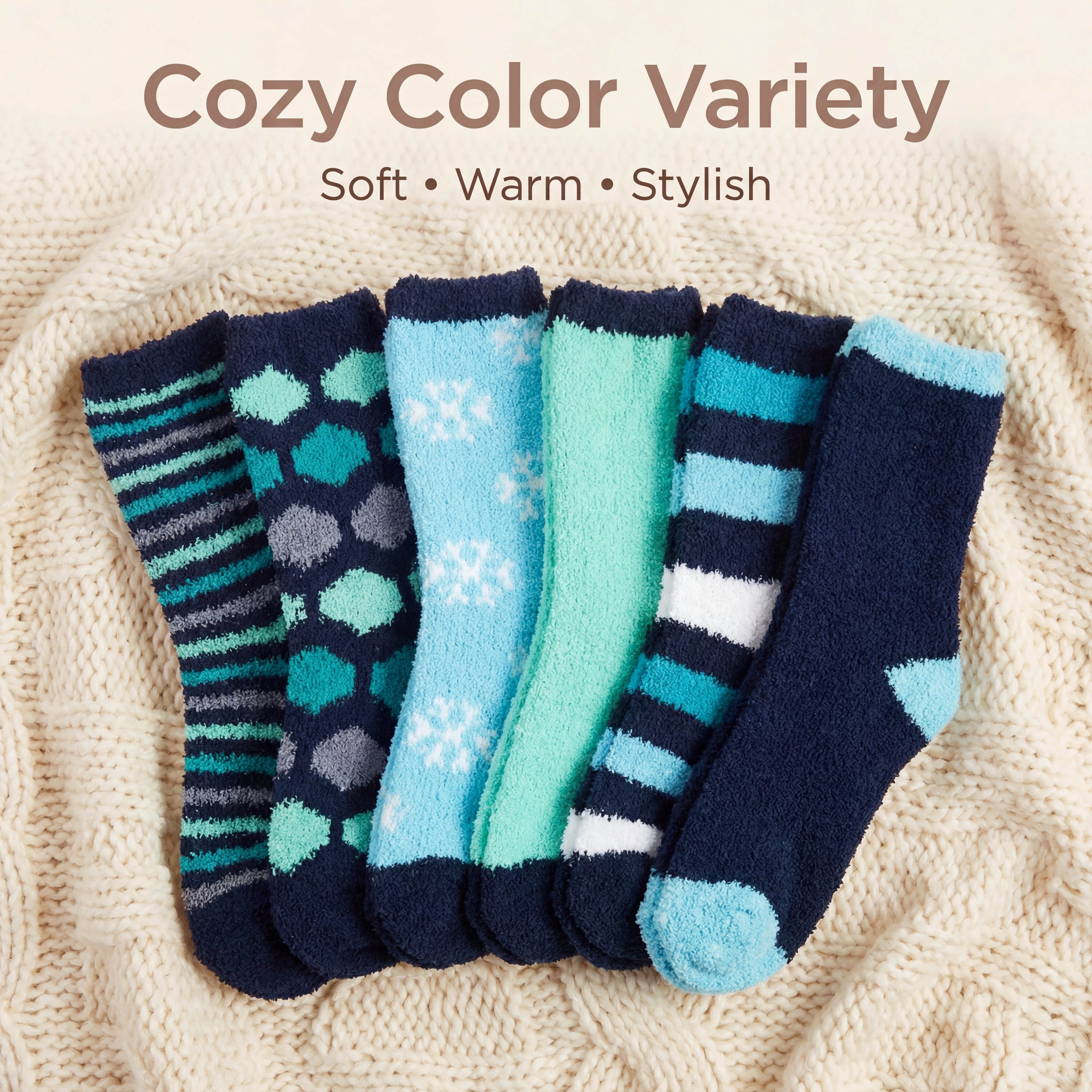 Colorful Patterned Icy Geometry Fuzzy Socks - 6 Pairs