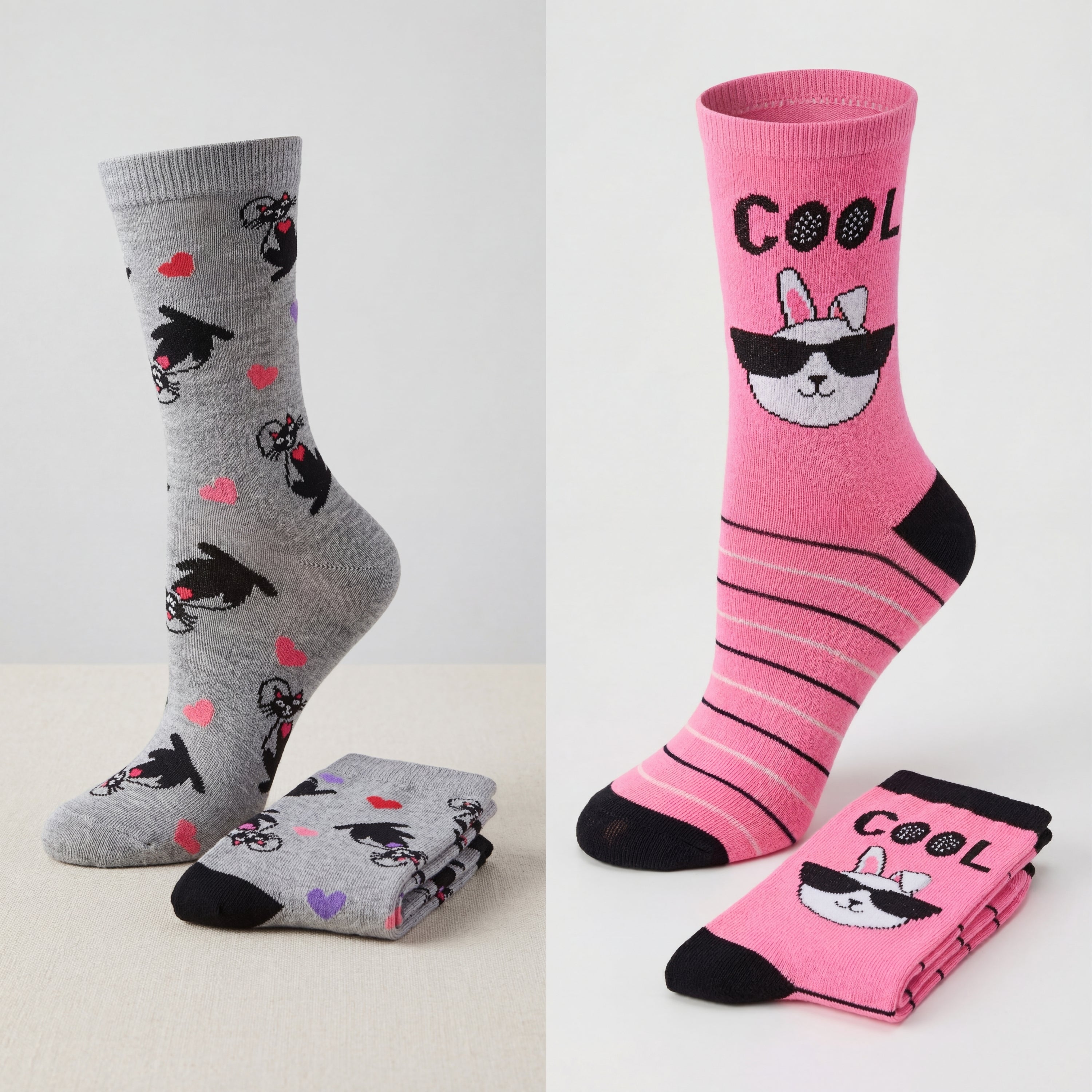 Women's charm to your style with our Heart, Rabbit, Cat Socks. Featuring adorable patterns, these socks keep your feet cozy and stylish every day.