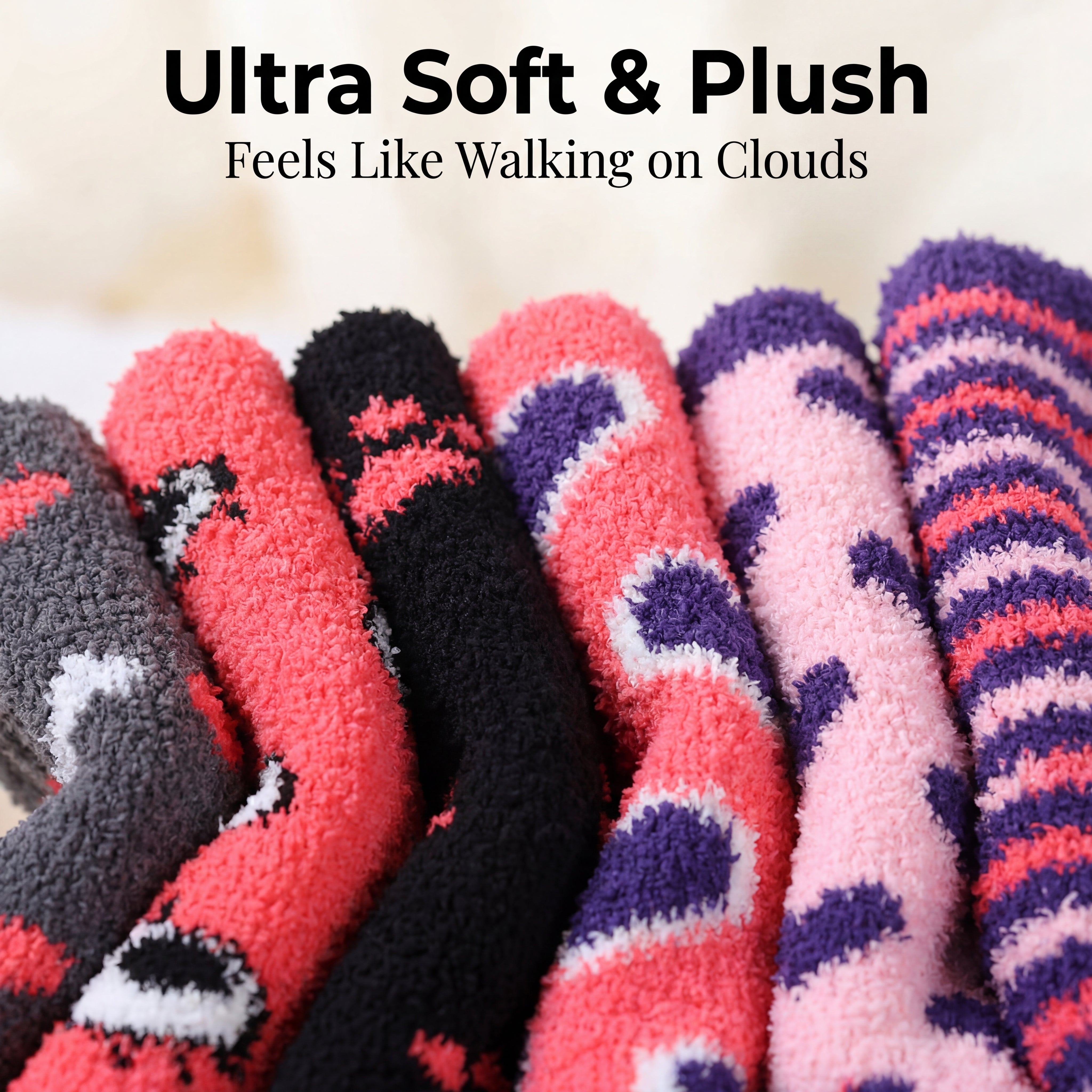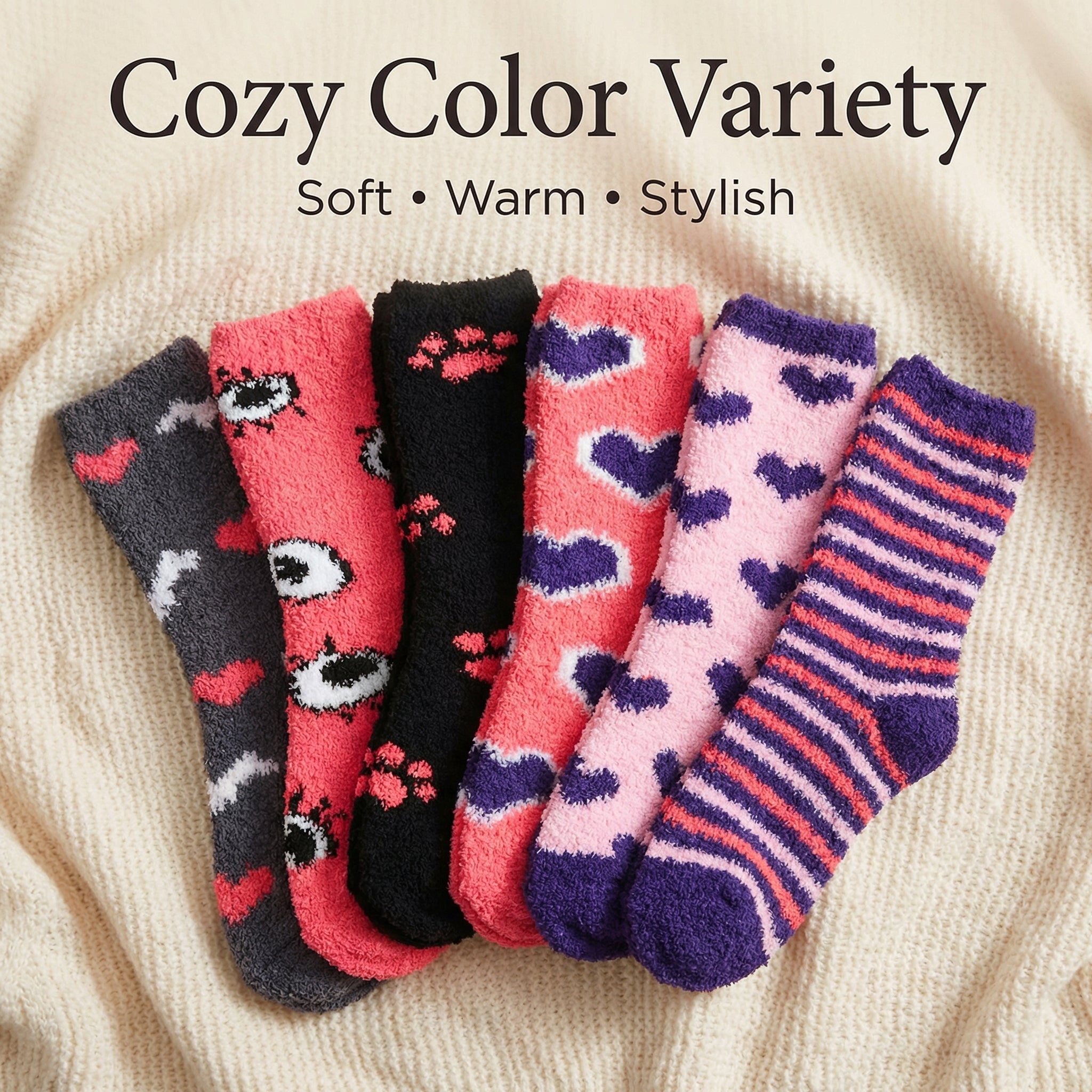 Colorful Patterned Heartfelt Hues Fuzzy Socks - 6 Pairs