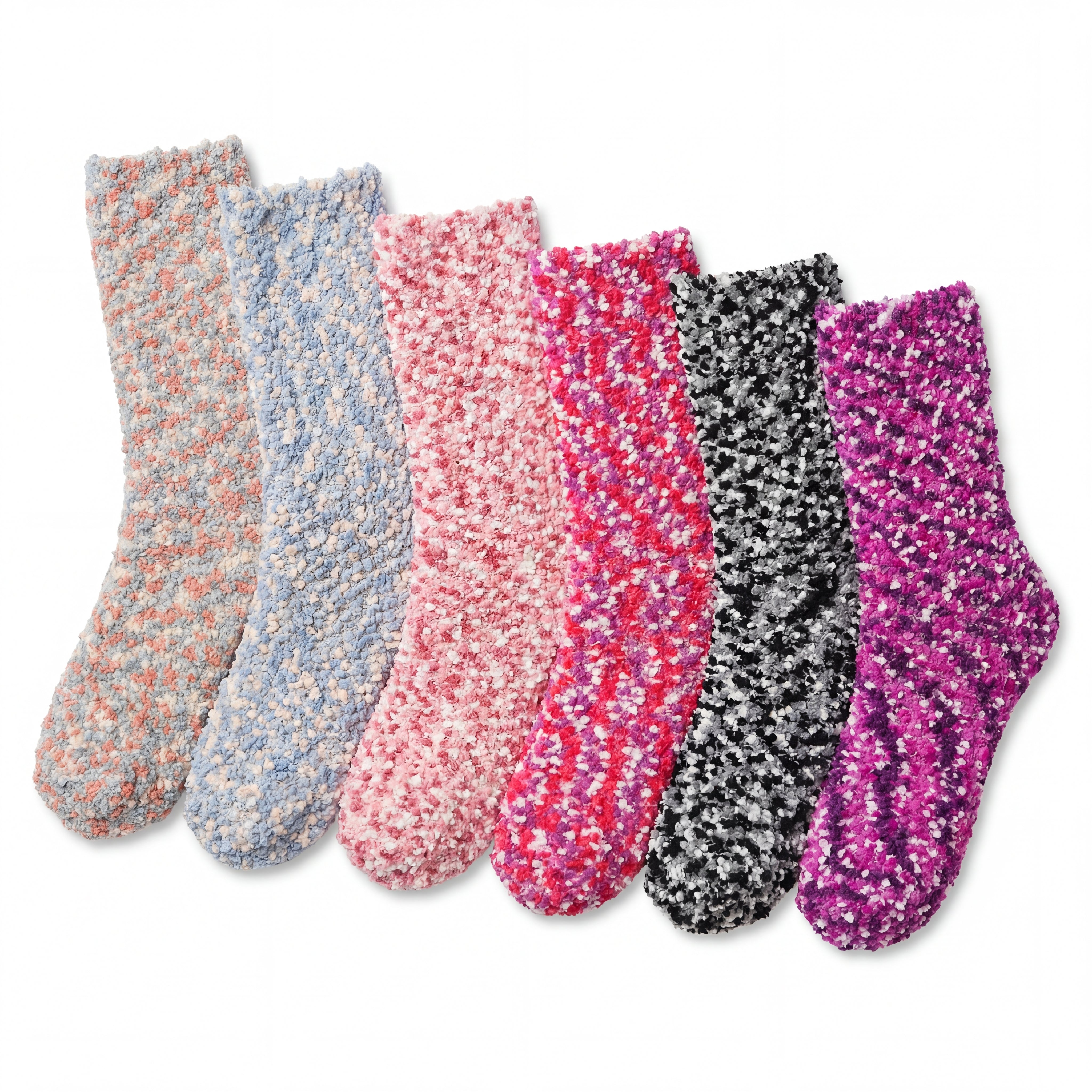 Colorful Patterned Maroon Melody Fuzzy Socks - 6 Pairs