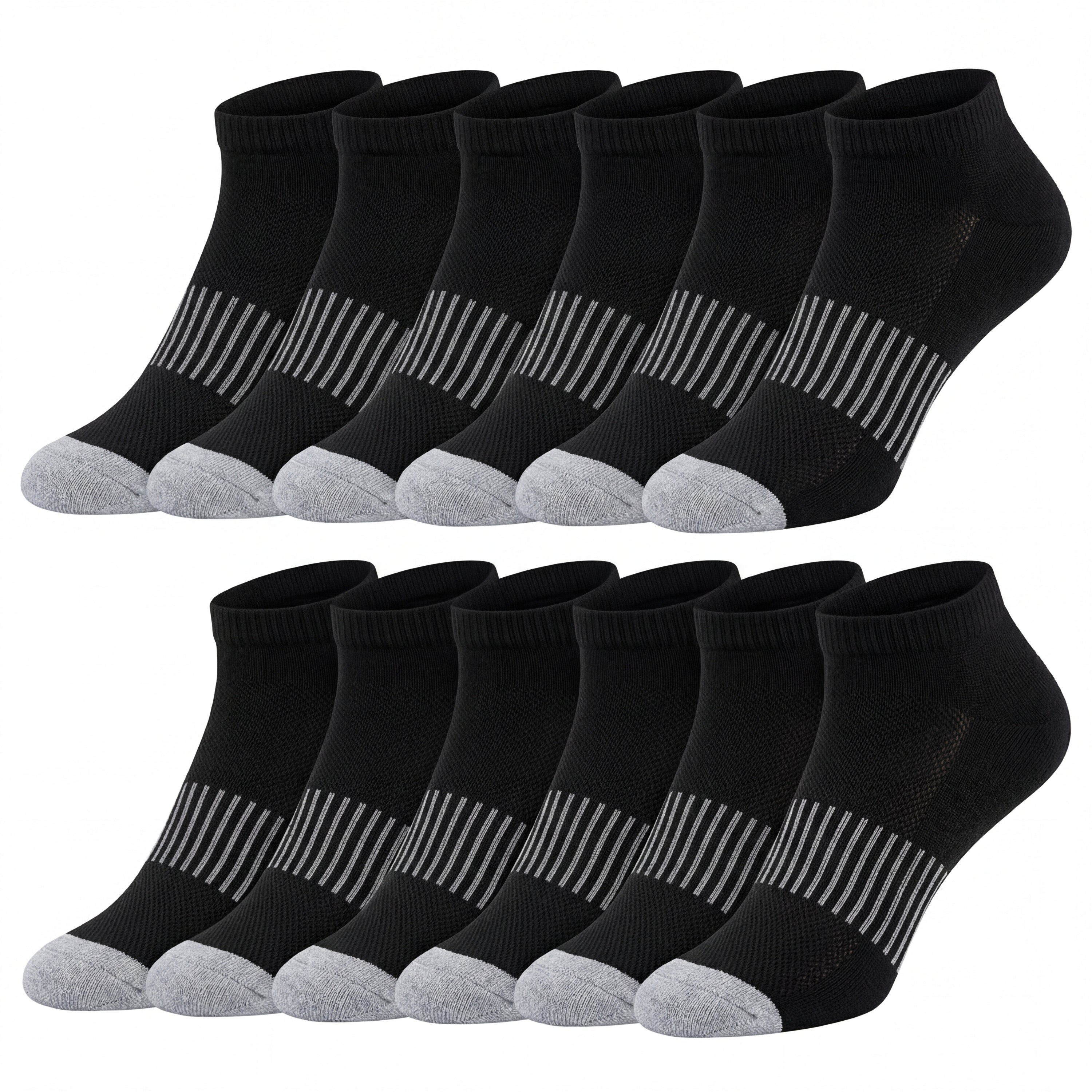 Men's Low Cut Contrast Striped Sports Socks - 12 Pairs